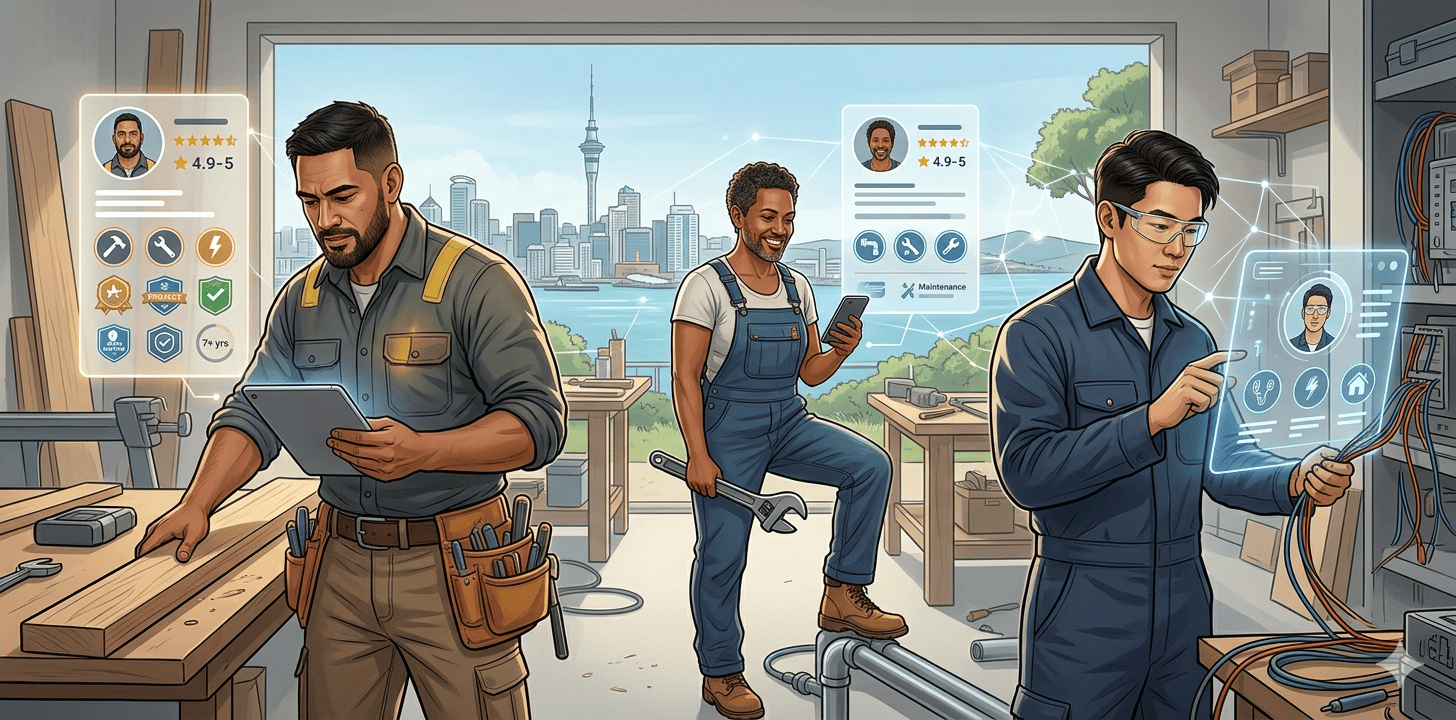 Professionals can verify their profiles by providing a valid ID, NZBN (New Zealand Business Number), or business license. Verified profiles get a badge and better visibility in search results.